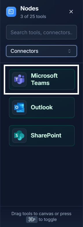 Add the Node: First, drag the Outlook connector from the Connectors panel onto your canvas.
