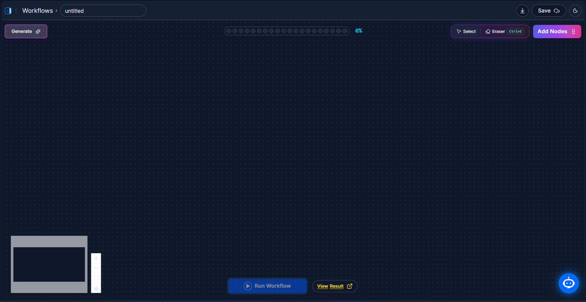 The Canvas is the main, empty workspace where you visually build your workflow. You drag your building blocks (nodes) onto the canvas and draw lines between them to create your automation's flow.