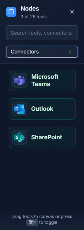 Connectors are the bridge between Wingerx and the other apps you use every day. The Outlook connector can read your emails, and the Microsoft Teams connector can send messages to your colleagues.